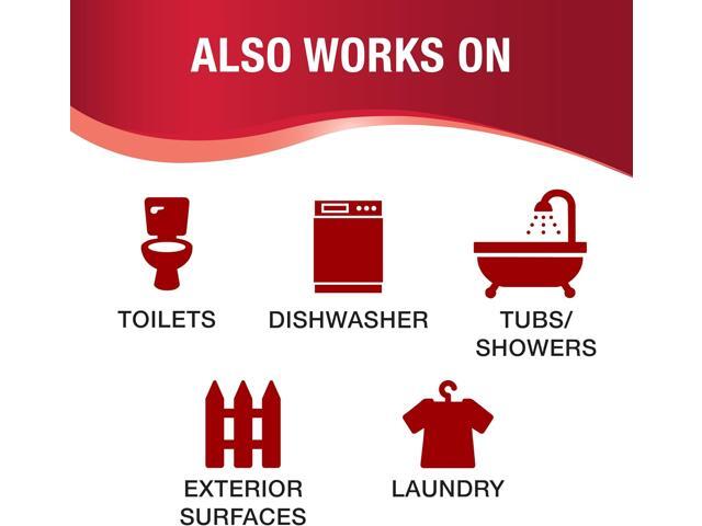 - Multi-Purpose Rust Stain Remover: Use Rust Out to remove rust stains inside dishwashers, on dishes, glassware, white clothes and fabrics, tubs and showers; Safe for use on porcelain, fiberglass and acrylic finishes; See label for dosing instructions