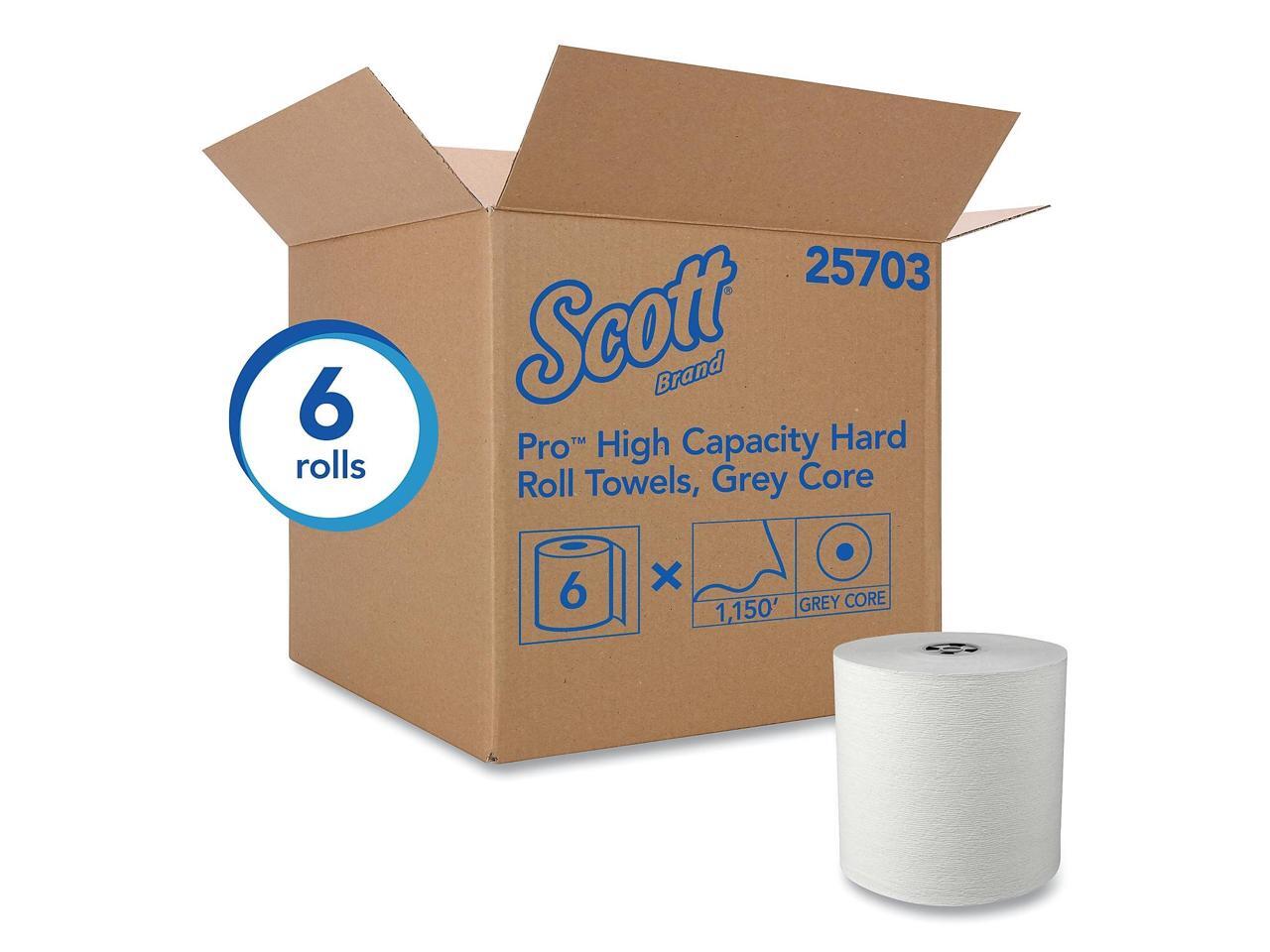 Scott 25703 Pro Hard Roll Paper Towels with Elevated Scott Design for Scott Pro Dispenser - Gray Core Only - 1-Ply - 1,150 ft - 6 Rolls/CT KCC25703