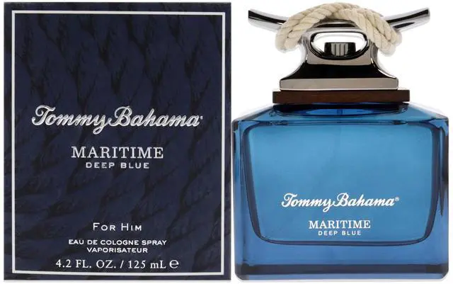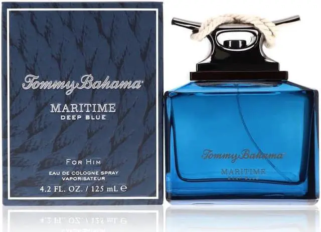 Product Description Adventure into the great big blue with Tommy Bahama Maritime Deep Blue. Descend into this fresh woody fragrance and discover the underwater world that holds no boundaries or restrictions. The top captivates with an exhilarating blend of sun drenched bergamot, spicy cardamom and aromatic juniper and rosemary. The fragrance transitions to a wave of freshness as water lily and dewy freesia mingle with fresh geranium and orris for a drenched floral impression. Lastly, the lasting back completes the experience as earthy patchouli and moss collide with fresh cedar wood and musks.