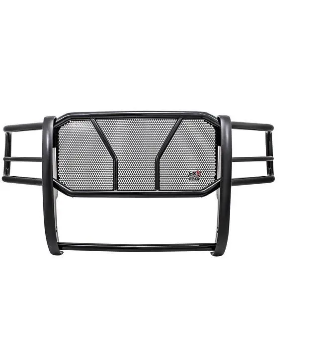 The HDX Grille Guard is the ultimate in extreme truck gear. Its a fully welded 1-piece grille guard that features full wraparound wings made of heavy duty 2" diameter tube. Uprights are finished and protected with extra wide rubber that is 1/8" thick and 2 3/4" wide resulting in a solid clean look. The full punch plate grille protects the vehicle's grille area. HDX Grille Guards are available in stainless and black powder coat finish.