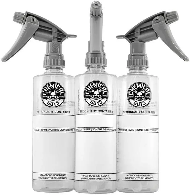 If you're a professional detailer or hardcore enthusiast who mixes and dilutes chemicals from gallon jugs, you're going to need some Secondary Container Dilution Bottles. These heavy duty detailing bottles with upgraded sprayer heads hold and spray 16 ounces of your favorite detailing chemicals. Buy your favorite Chemical Guys cleaner, degreaser, spray wax, spray sealant, or spray able dressing and protectant by the gallon, then pour them into the clear secondary container bottle and get to work! The 16 ounce capacity is the same as all the other quantities sold by Chemical Guys, but you have the freedom to mix your own custom dilution for targeted detailing that saves even more money.