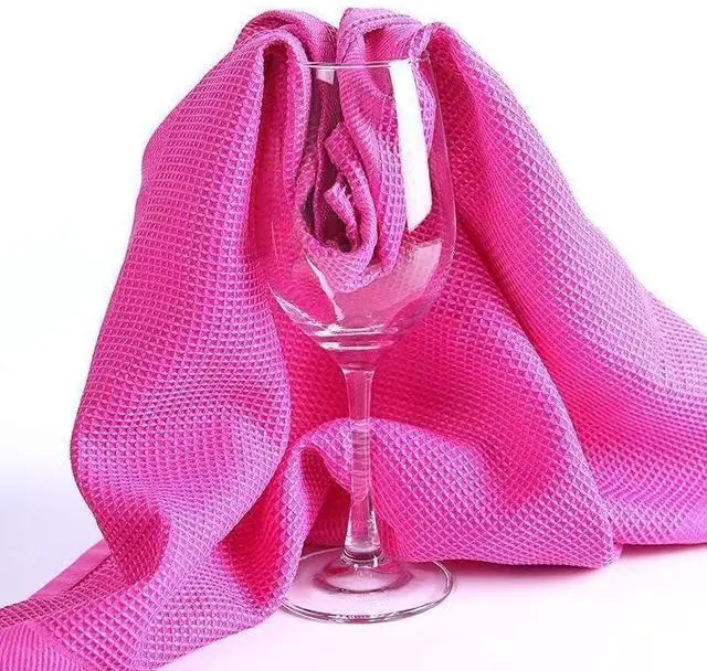 Elevate your kitchen cleaning routine with this premium waffle weave dish towel in vibrant pink. The distinctive honeycomb texture is specifically designed to maximize absorbency, making quick work of drying dishes, glassware, and kitchen surfaces. The waffle pattern creates additional surface area that traps moisture effectively while remaining quick-drying itself. This versatile kitchen cloth features a durable weave that stands up to regular use and washing, maintaining its shape and functionality. The cheerful pink color adds a pop of style to your kitchen decor while serving its practical purpose. Perfect for everyday use, this generously sized towel works equally well for drying hands, wiping counters, or handling hot dishes. The lightweight yet sturdy construction ensures comfortable handling during all your kitchen tasks. Regular machine washing keeps it fresh and ready for continued use, making it a reliable addition to your kitchen essentials.
