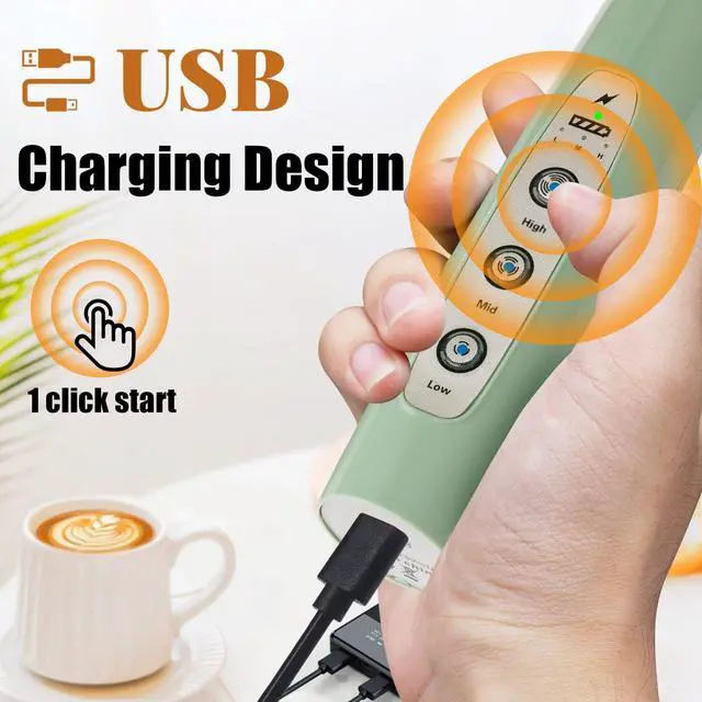 Low, medium, and high power settings for 3 speeds, powerful and low noise. This frother for coffee also includes a charging indicator light that turns red while charging and green when fully charged.