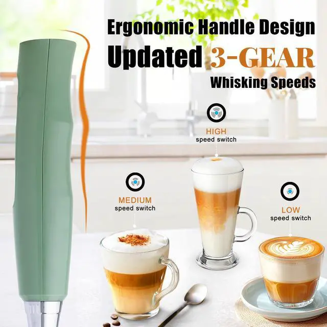 Granite Green Milk Frother Wand for Coffee, Frother Handheld Rechargeable Electric Whisk with 3 Heads 3 Speeds Drink Mixer Coffee Frother Foam Maker For Latte, Cappuccino, Hot Chocolate, Egg