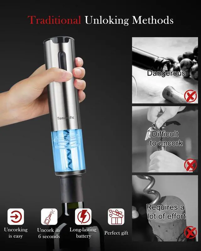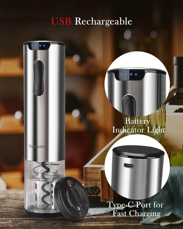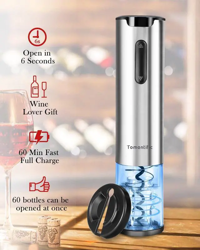 Tomentific cordless electric wine opener set can be an impeccable gift for wine lovers. It is very suitable to any festivals and occasions. Surprise your family and friends