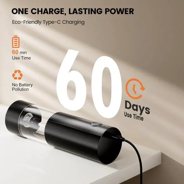 - , This rechargeable salt and pepper grinder set only powers up in 5 minutesenough to season an entire meal. A full charge delivers long-lasting power, keeping your grinder running for up to 2 months. Ditch disposable batteries and enjoy smarter kitchen appliances for hassle-free, eco-conscious cooking.
