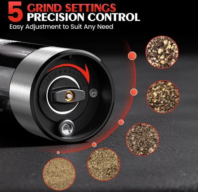 Battery Powered: Our salt and pepper grinder set is eliminating the need for constant battery replacements. Effortlessly grind your spices with one button operation. Enjoy enhanced visibility with the built-in bright light