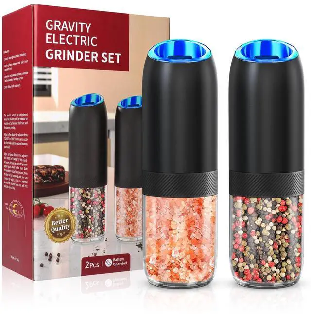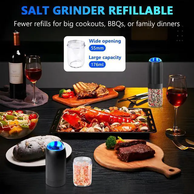 BOAN One-Hand Gravity Electric Salt and Pepper Grinder Set allows you to season your steaks while flipping them -automatic powdering in 0.1 seconds, pure magic!