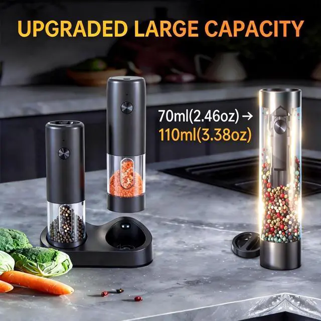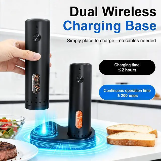 Effortless Dock Charging & Long-Lasting Power: Features a stable charging dock that not only keeps your kitchen countertop organized and free of tangled wires but also ensures your grinders are always fully charged and ready for action. Say goodbye to the hassle of plug-in cables and dead batteries mid-cooking.