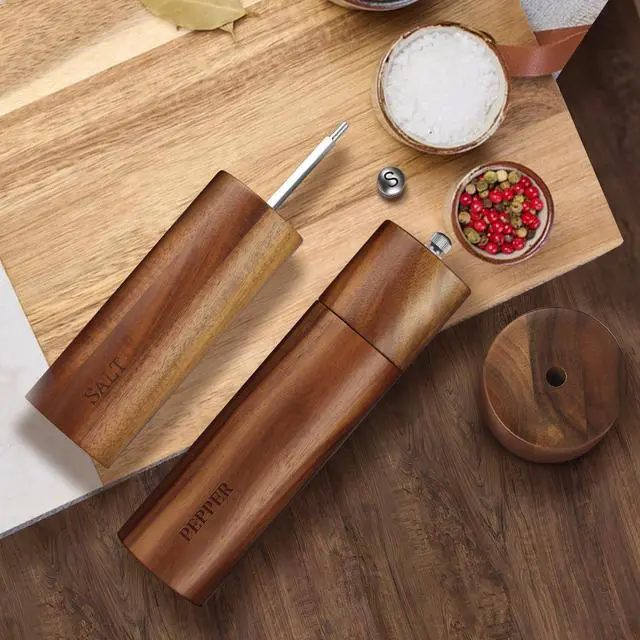 | Idea Gift | This acacia wood salt and pepper grinder set is the perfect gift for any cooking enthusiast, helping them to improve their seasoning while adding a touch of elegance to the kitchen. |