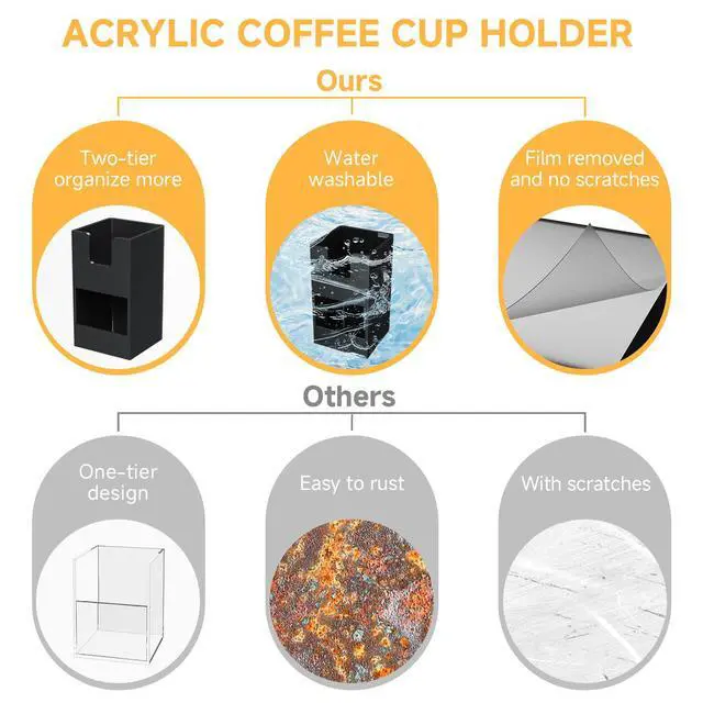 Rulyyo Acrylic Cup and Lid Holder Coffee Bar Organizer Coffee Station Organizer