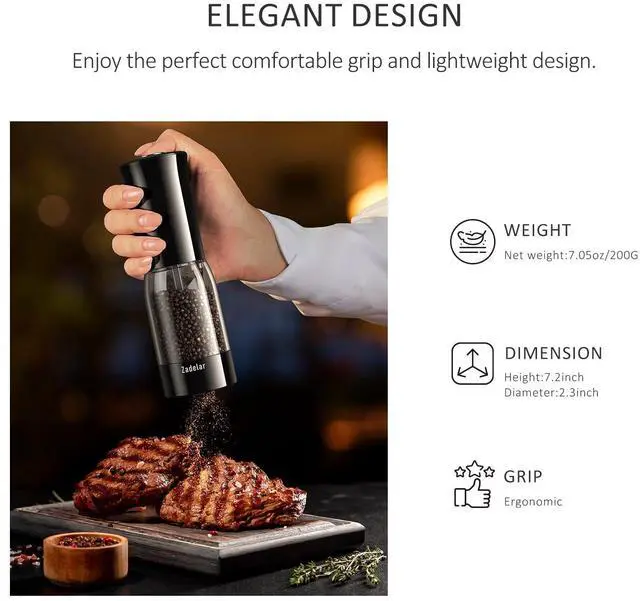 [Efficient Rechargeable Pepper Grinder]Our electric salt pepper shaker's continuous and stable grinding function allows you to enjoy an even spice rush.In addition, it provides a usb charging port and built-in 500 mAh rechargeable lithium-ion batteries,no additional AAA batteries required,save money.It can be fully charged in 1.5 hours and can be used for daily enjoyment for about 45 days-best companion for modern home or kitchen.