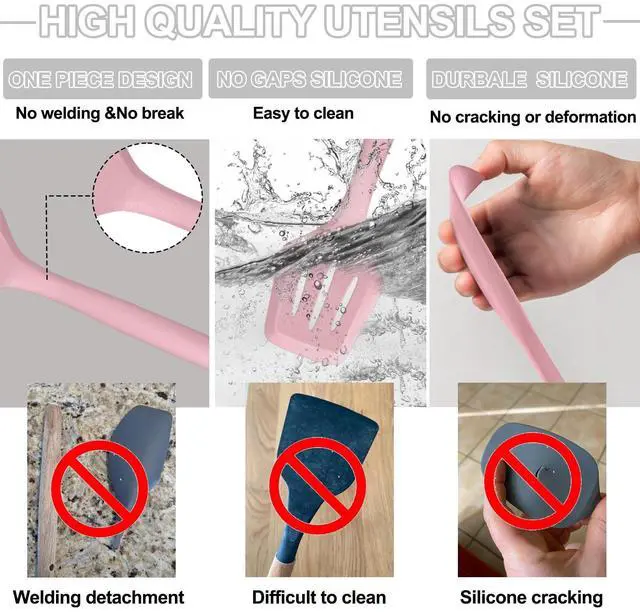 Seamless silicone design which is a major plus for kitchen utensils as there aren't any cracks or ridges to catch food or harbor anything that makes it super easy to clean and use.