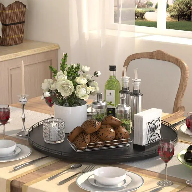 Upgrade your dining experience with our Round Oak Wood and Iron Frame Lazy Susana balance of aesthetics and functionality. This versatile tabletop accessory effortlessly adds convenience to your mealtimes while enhancing the visual appeal of your space. Crafted with a fusion of reliable iron framing and the natural beauty of oak wood, our Lazy Susan offers both durability and charm. Its 360-degree rotation allows you to access items from every angle, making it perfect for sharing dishes, condiments, or other essentials during family gatherings or parties. Optimize your table layout by using the Lazy Susan to keep items neatly arranged while freeing up space for a clutter-free dining environment. Its smooth rotating mechanism ensures ease of use, enabling a seamless serving experience that delights both guests and hosts. The Round Oak Wood and Iron Frame Lazy Susan isn't just a functional additionit's a decorative centerpiece that elevates your table aesthetics. Its easy-to-clean surface simplifies maintenance, while the sturdy construction guarantees its longevity. Surprise your loved ones with a thoughtful gift that combines style and usability. Whether for a housewarming or special occasion, this Lazy Susan is a practical yet charming choice that will be appreciated by all. Enhance your dining table's functionality and visual appeal with this Round Oak Wood and Iron Frame Lazy Susan.