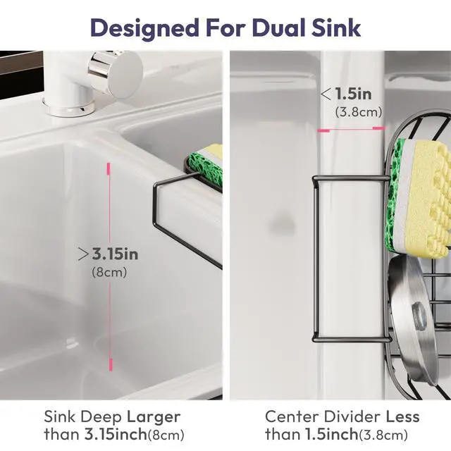 Specifically Designed For Double Sinks, Ensuring A Perfect Fit. Please Measure Your Sink'S Divider Width (Less Than 3.8 Inches) And Depth (Greater Than 3.15 Inches) Before Purchasing