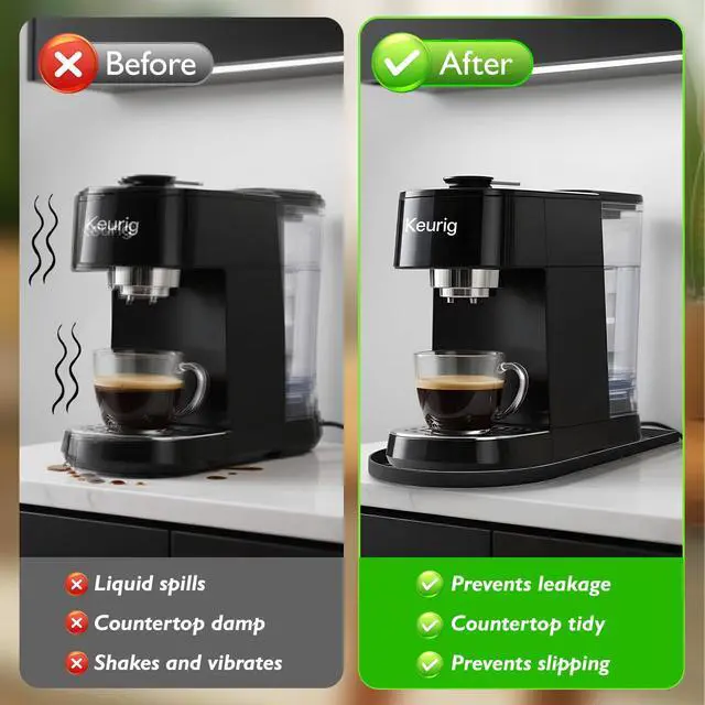 Forget the frustration of ill-fitting coffee mats that slip around or leave gaps. Our silicone coffee mat is tailor-made according to the curved shape of mainstream coffee machines on the market. It fits tightly around the base of your coffee machine, eliminating any movement during use. The full coverage design not only keeps the machine stable but also prevents scratches, scuffs, or residue from damaging your precious countertopbe it wooden, marble, quartz, or granite. Made of high-quality silicone material that can withstand temperatures up to 446°F (230°C), our mat effectively absorbs the heat emitted by the coffee machine during operation. This means you no longer have to worry about high temperatures warping or discoloring your countertop. Additionally, the waterproof and oil-resistant surface acts as a reliable barrier against accidental spillswhether its coffee, milk, syrup, or cleaning water. Spills can be easily wiped away, keeping both the mat and your countertop clean and dry at all times.