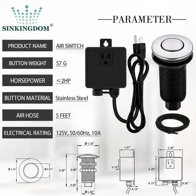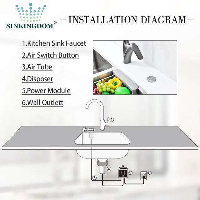 Tips: Gently press the air switch button to start the garbage disposal, press again to turn it off.
