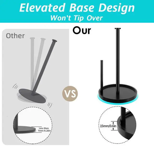 The paper towel holder has a weighted base for easy one-handed operation, keeping it stable while you tear paper.