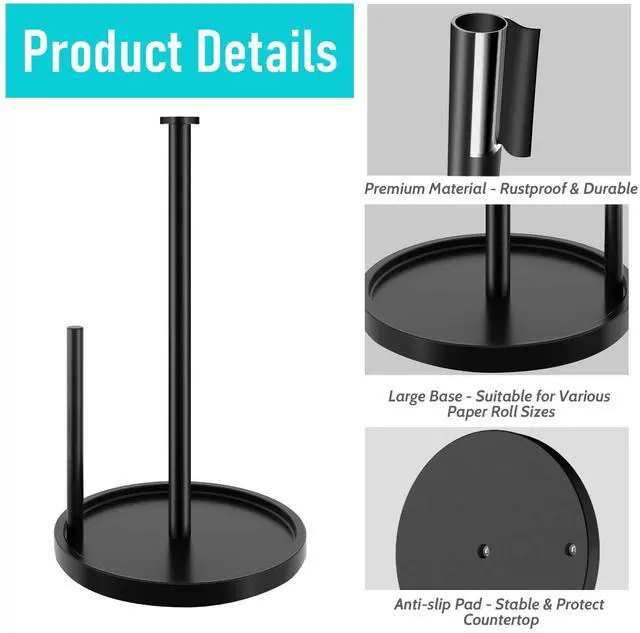 Matte Black Freestanding Paper Towel Holder for Kitchen Bathroom Countertop
