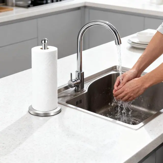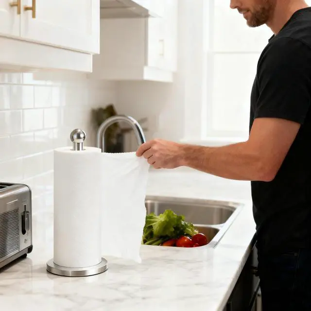 The thick chassis keeps the paper towel holder stand in place and avoids wasted paper towels on wet countertops.