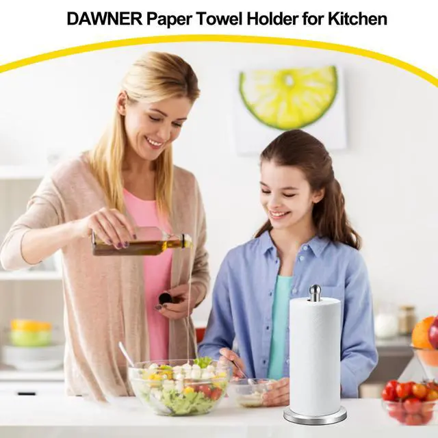 DAWNER Kitchen Paper Towel Holder Stand Quickily One-Handed Tear, Brushed Nickel