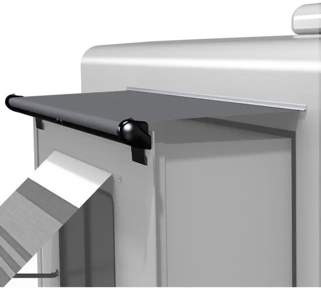Give your RV extra protection with our SideOut Kover III. Our RV slide toppers operate automatically with your slide out. The integrated wind-deflector prevents billowing and provides fabric protection for when you travel. The concealed, built in cradle support prevents the roller assembly from sagging to enhance the unified, sleek, modern look for your RV. All mounting screws are completely covered and concealed to finish off the clean look. The roller tube, bracket assemblies, and wind deflector are all made of extruded Aluminum for longer lasting durability. The deflector and covered model are available in standard white or black, with matching vinyl, brackets, and end caps.
