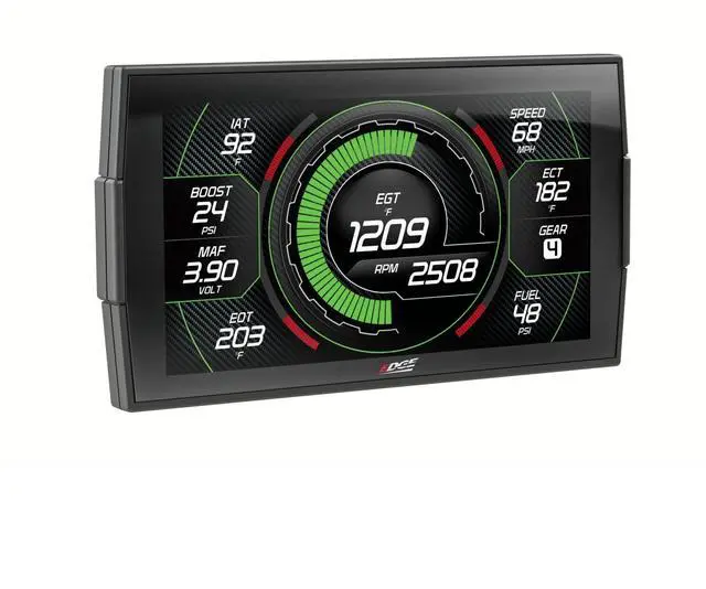 If you're looking for a product to improve throttle response, that extra power when towing, race down the track, increase fuel economy, or just improve the overall driveability of your truck then the Evolution is the option. Not only do you get these increase performance features but you get a monitor that offers a clean simple solution for gauges like EGT (exhaust gas temperature), Boost readings, transmission temp, load percent, percentage of fuel left, and more with the expandability to even add more with our EAS (expandable accessory system) or Edges backup camera.