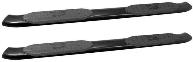 Westin Pro Traxx 5 inch Oval Tube Nerf Bars features a bold series unique saddle mounted step pad and deep paved waterways that help keep step area dry. Pro Traxx 5 inch Oval Tube Nerf Bars feature fully coated seamless domed ends with 30 degree OE style bends. Applications are no-drill installation and are available in polished stainless steel with lifetime warranty and black powder coat e-coated mild steel with 3 year warranty. Mount kit included.