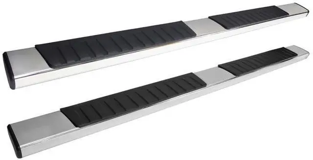 Westin's R7 Nerf Step Bars feature oversized step pads and factory style traction grooves. R7 Nerf Step Bars are sold in complete kits that include: driver and passenger-side boards, vehicle specific mount kit, and injection molded bracket covers to give them the appropriate Westin clean look. R7 Nerf Step Bars are available in polished stainless steel backed by a lifetime, and black powder coated aluminum backed by a 3-year.