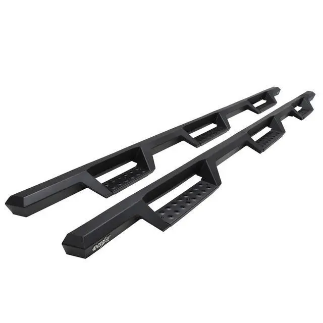 Westin's HDX Drop Wheel to Wheel Nerf Step Bars feature a notched bar design with a 3rd step location for easy bed access. They provide strong traction with over 2 inches more of toe/heel step area than our Westin's HDX Drop W2W Nerf Step Bars include an added 3rd step location for easier bed area and cargo access. HDX also boasts more than 2 inches of added toe/heel step area which far exceeds all other competitive brands. HDX's notched bar design construction results in a reliable long lasting Bar, with a solid fit and a rugged look.