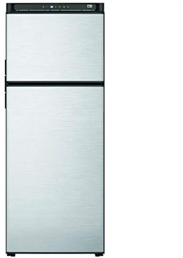 Norcold N10DCSSR Polar-Series Refrigerator features an upgraded appearance with enhanced modern styling. Taller door panels provide a more built-in look with reversible stainless steel doors with curved edges. A travel latch keeps the doors closed during transit. Night Mode reduces both compressor and fan sped to conserve the battery charge and reduce noise. Dual crisper drawers allow vegetable storage and more. Separate LED lights illuminate the refrigerator section and freezer compartment. The refrigerator includes RV-standard mounting holes for easy installation without brackets.