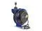 Power cord reel with patented EZ-Coil safety spring controlled retraction eliminates workplace accidents by reducing auto rewind speeds by up to 80%! No effect on pullout tension. Guide arm adjusts to wall, floor and overhead mounting positions. U. S. A.