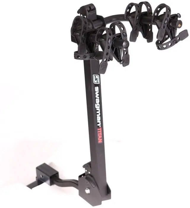 Product DescriptionAbout Swagman"Ride, paddle, explore: seek your adventure"That philosophy was the intention of founders Jim and Jan Morris who saw an opportunity to create a better way to transport your bike back in the early 90s. Swagman was one of the first companies worldwide to design and market a hitch style bike rack. Over the years, that small bike rack company based in the Okanagan Valley of British Columbia grew to include numerous other ground breaking designs in the North American Bicycle, RV and Automobile markets. Amazon. comSwagman 63400 X-TRA 4 Bike Rack features a dual arm system designed to carry up to four bikes. The rotating cradles have Kraton cushioned vinyl which is grooved for cables, providing a scratch-free, secure ride for a variety of bike styles and sizes. When not in use, the support arms of this heavy-duty rack fold down. The X-TRA 4 rack also features a two-inch receiver on the mount and fits class two or three hitches.