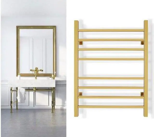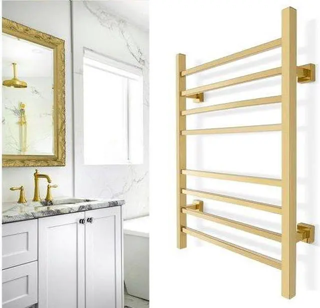 A towel warmer is more than just a simple applianceits an instant upgrade to your morning routine! When a warm towel is waiting for you after your shower or bath, it makes it that much easier to start your day off right. The Sierra towel warmer provides this additional touch of luxury while also presenting itself as a stylish design element in any room. With a modern, geometric look and polished gold finish, this model becomes a focal point in any room. The Sierras eight square bars perfectly accommodate two bath towels or a bathrobe to help keep them warm or dry between uses.