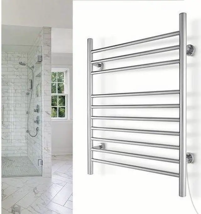 Dimensions: 23.6" (600 mm) W x 32" (813 mm) H x 4.75" (121 mm) D150 watts, heat output of 512 BTUs per hour10 heated straight barsPolished finish, 304-stainless steel constructionDual connection (120 VAC) can be used plug-in or hardwired (with modification) Integrated power switch with indicator lightSafe: cETLus listed with built-in overheat protectionWarranty: 2 yearsLifetime technical support from WarmlyYours