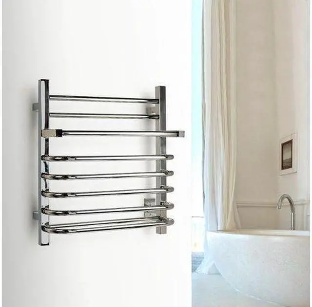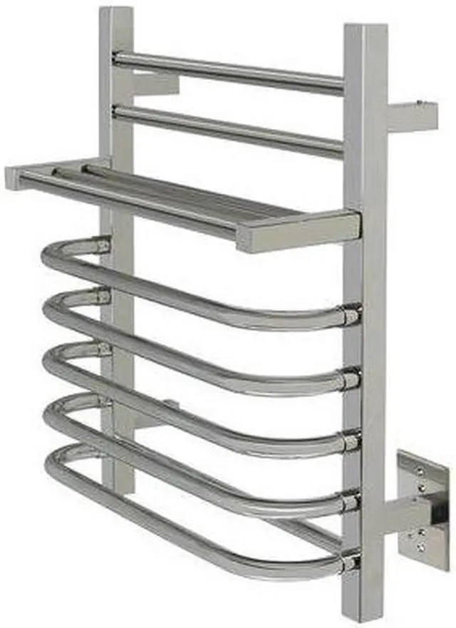 The Maui towel warmer from WarmlyYours features an innovative design with an integrated, non-heating storage shelf for extra towels. With its compact design, this model delivers all of the functionality of larger units without taking up unnecessary wall-space. The hardwired electrical connection for the wall-mounted Maui will provide a streamlined look without visible wires. The 7 heated bars will deliver a heat output of 222 BTUs per hour which will not only warm your towels and bathrobes but also dry them between uses. The highly polished finish, 304-stainless steel construction, and curved design of the Maui means this towel warmer will instantly fit into any contemporary design motif.