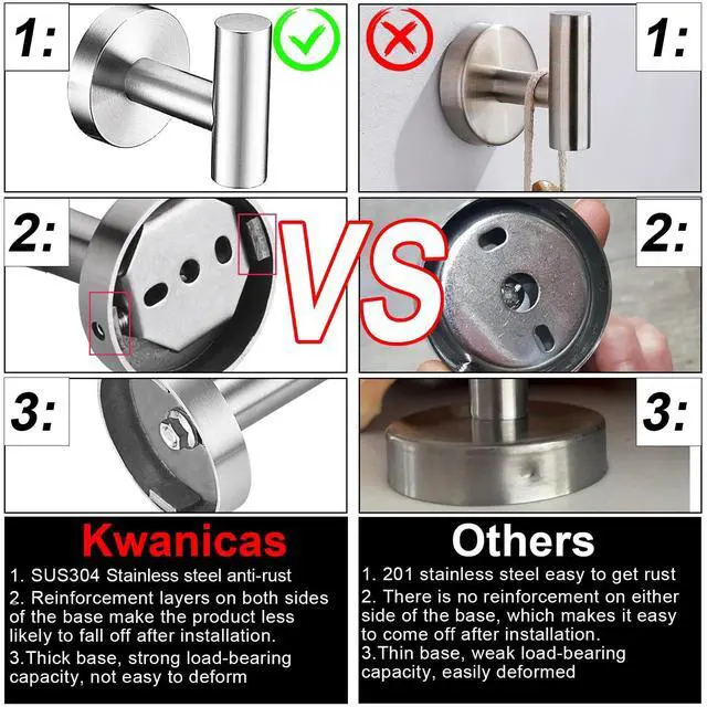 Bath towel hook is constructed of type SUS304 premium grade stainless steel, no fade, prevent rust and corrosion, keep it in top condition for a long time and build to resist daily scratches.Use it to hang towels, bathrobes, clothes, keys, hats, etc.