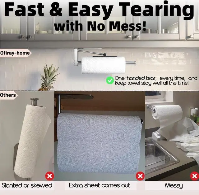 Upgrade your kitchen with the Ofiray-hom Paper Towel Holder - experience the convenience of one-hand tearing, secure hanging paper, and durable construction. Say goodbye to the frustrations of traditional towel dispensing and enjoy a more efficient and organized kitchen.
