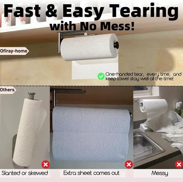 Upgrade your kitchen with the Ofiray-hom Paper Towel Holder - experience the convenience of one-hand tearing, secure hanging paper, and durable construction. Say goodbye to the frustrations of traditional towel dispensing and enjoy a more efficient and organized kitchen.