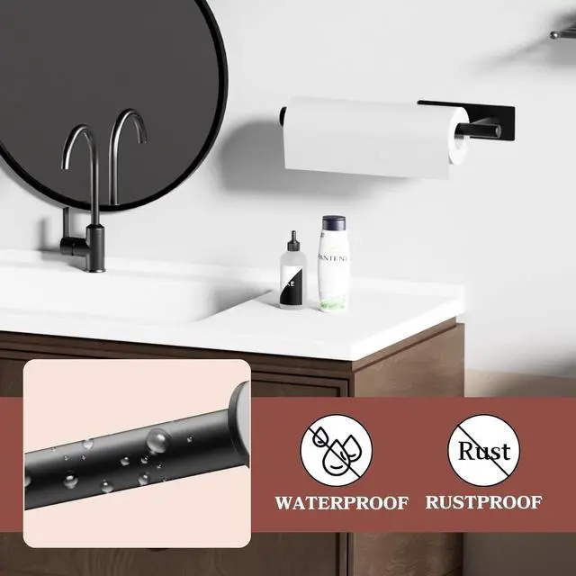 DURABLE, WATERPROOF AND RUSTPROOFSafeguard your paper towel roll from mold and damage with our paper towel holder wall mount. Built to last, it boasts exceptional strength and a prolonged lifespan, ensuring protection against moisture and rust