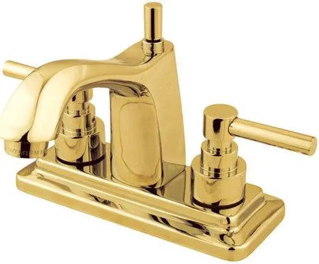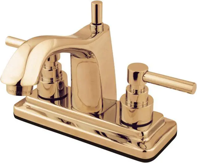 Double Handle 4" Centerset Lavatory Faucet with Elinvar Lever Handles and Brass Drain Assembly from the Elinvar Collection Kingston Brass’ primary mission is to become the leading provider of cost effective, high quality products in the plumbing community. Their focus has made them grow by leaps and bounds in just a few years by identifying the key problems in manufacturing today and solving them. Kingston Brass produces high quality products ranging from kitchen, bath, and lavatory faucets to accessories such as diverters, towel bars, robe hooks, supply lines, and miscellaneous parts. With the low price, amazing stock times and quality products, you can rest assured that when you order a Kingston Brass product you will love every part of the experience, and it will last for generations to come. Features: Coordinates well with Contemporary / Modern theme 1/4 turn valves Ceramic disc cartridge 1/2" IPS inlets Includes brass drain assembly Constructed from solid brass for durability and reliability Finished with a premium color to resist tarnishing and corrosion Faucet holes: 2 Handle style: Metal Lever Number of handles: 2 Drain assembly included: Yes Specifications: Height: 4.375" Width: 8.75" Spout reach: 4" Spout height: 3"