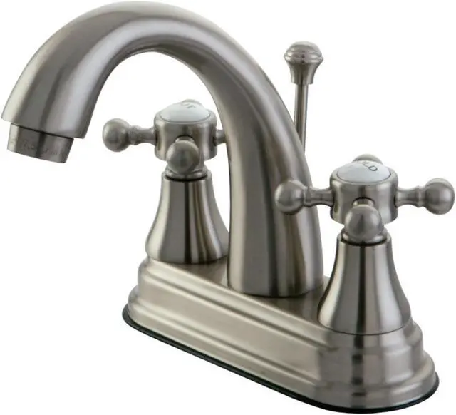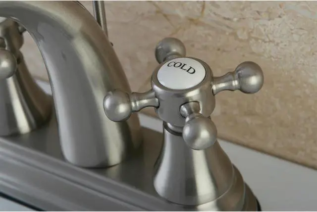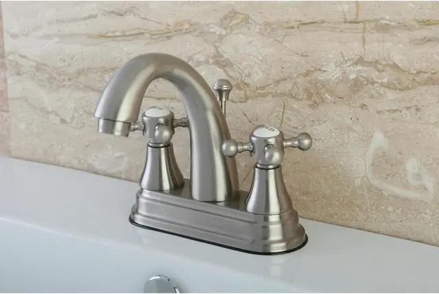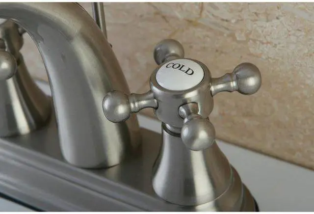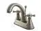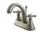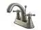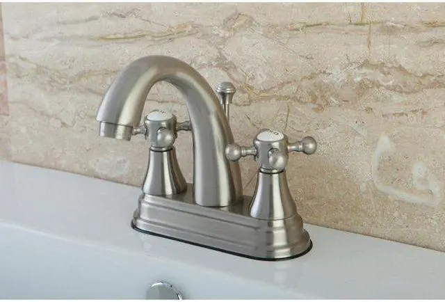 Includes matching pop-up drain and all mounting hardware. Contemporary style. 4 in. center set installation. Standard US plumbing connections are used. Whimsical feel with its sweeping spout and graceful lever handles. Deck mount setup. Water measured 2.2 GPM (8.3 LPM) and a 60 PSI maximum rate. Drip-free washer less cartridge system. 5.13 in. spout reach. 4.13 in. spout height. 2.75 in. aerator clearance. Made from brass. Satin nickel finish. Made in Taiwan. Assembly Instructions.
