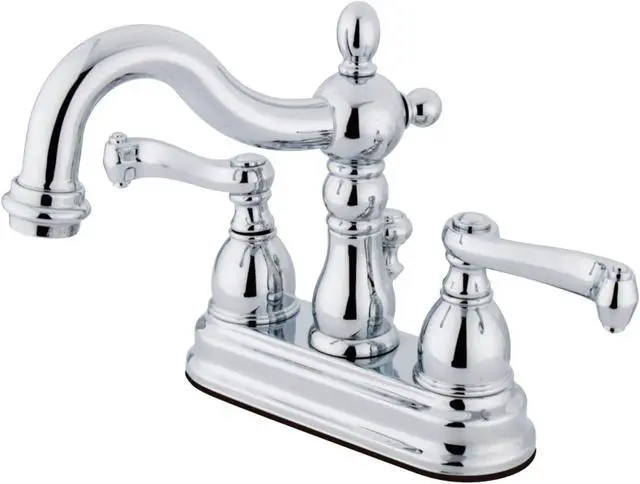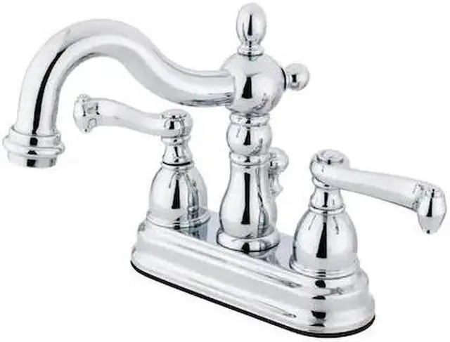 A lavish spark of traditionally stylized glamour is brought to your bathroom ensemble with this beautiful faucet. Centerset bathroom faucets are ideal for smaller bathrooms and feature an easy 3-hole installation. The Heritage 4-Inch Centerset Bathroom Faucet with Retail Pop-Up and its featured sturdy brass construction and premium polished chrome finish are glamorize your home's traditional ensemble for years to come. Celebrate sophistication and traditional decor with this statement piece. A matching finish drain is also included.