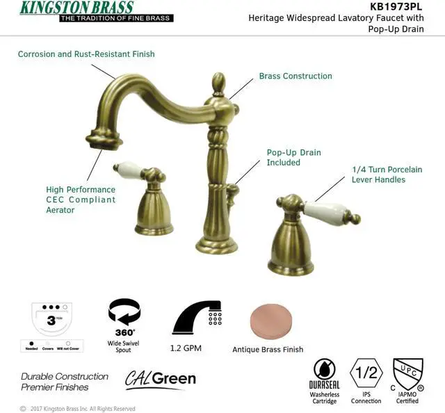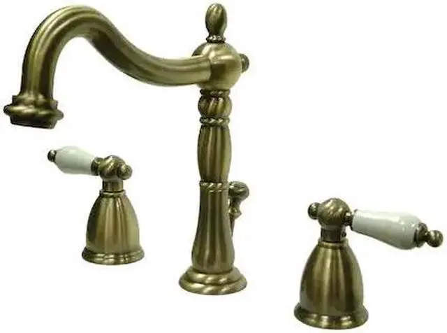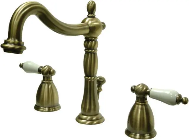 A lavish spark of traditionally stylized glamour is brought to your bathroom ensemble with this beautiful faucet. Ideal for more spacious bathrooms, widespread faucets are more spread apart and feature a 3-hole installation. The Heritage 8-Inch Widespread Bathroom Faucet with Retail Pop-Up and its featured sturdy brass construction and premium antique brass finish are glamorize your home's traditional ensemble for years to come. Celebrate sophistication and traditional decor with this statement piece. A matching finish drain is also included.