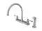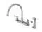 The exquisite design of this faucet tastefully flatters the elegant architecture of traditional homes with its fine detailing. Easily adaptable to any style, centerset faucets are admired for their single unit and ease of installation. The brushed nickel finish will also provide a long lasting and warm touch to your kitchen ensemble. A sturdy brass construction and swivel abilities make for a reliant and long lasting fixture. Utilize the included matching finish side-sprayer for convenience in cleaning hard-to-reach areas.