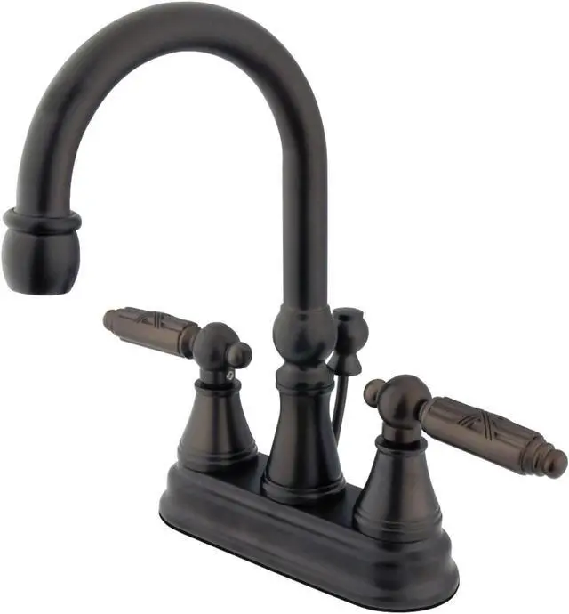 The whimsical design of this faucet is intended to catch eyes. Centerset bathroom faucets are ideal for smaller bathrooms and feature an easy 3-hole installation. The Georgian 4-Inch Centerset Bathroom Faucet with Brass Pop-Up and its featured sturdy brass construction and premium oil rubbed bronze finish are glamorize your home's modern ensemble for years to come. Complete your personal European sanctuary with the help of this elegant piece. A matching finish drain is also included.