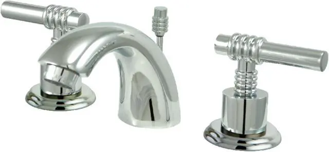 The exquisite design of this faucet tastefully flatters the elegant architecture of traditional homes with its fine detailing. Emulating the widespread look, mini-widespread bathroom faucets are for those that love detailed facets and clean lines. These compact faucets provide all of the design elements of a quality faucet without the need for a deck plate in 3-hole sinks. The Kingston Brass Mini-Widespread Bathroom Faucet and its featured sturdy brass construction and premium polished chrome finish are glamorize your home's traditional ensemble for years to come. A matching finish drain is also included.