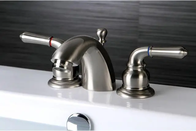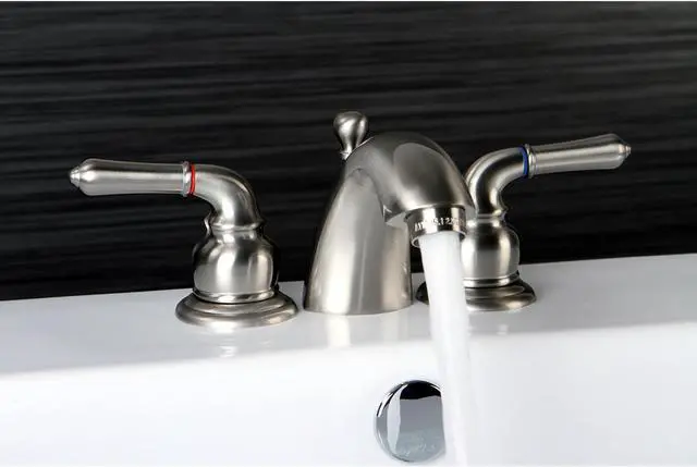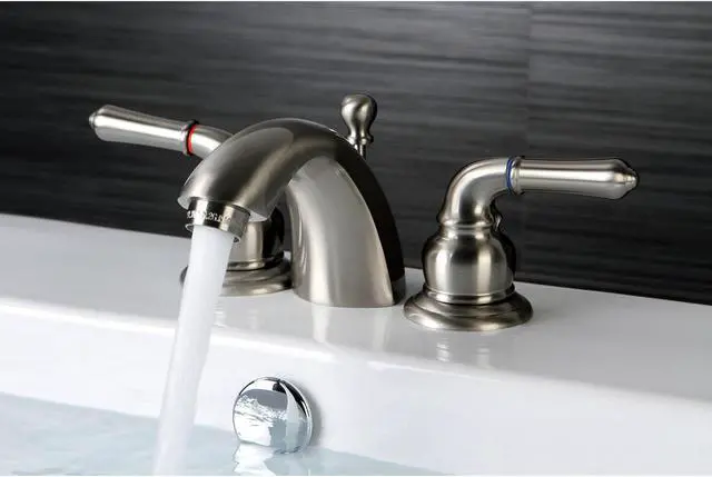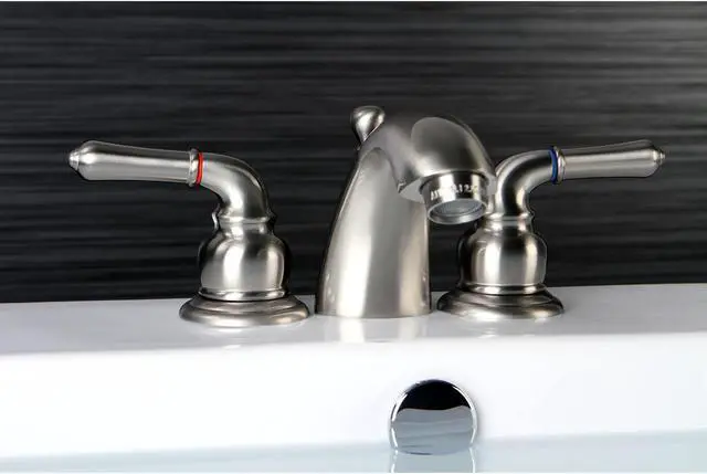 The exquisite design of this faucet tastefully flatters the elegant architecture of traditional homes with its fine detailing. Emulating the widespread look, mini-widespread bathroom faucets are for those that love detailed facets and clean lines. These compact faucets provide all of the design elements of a quality faucet without the need for a deck plate in 3-hole sinks. The Kingston Brass Mini-Widespread Bathroom Faucet and its featured sturdy brass construction and premium brushed nickel finish are glamorize your home's traditional ensemble for years to come. A matching finish drain is also included.