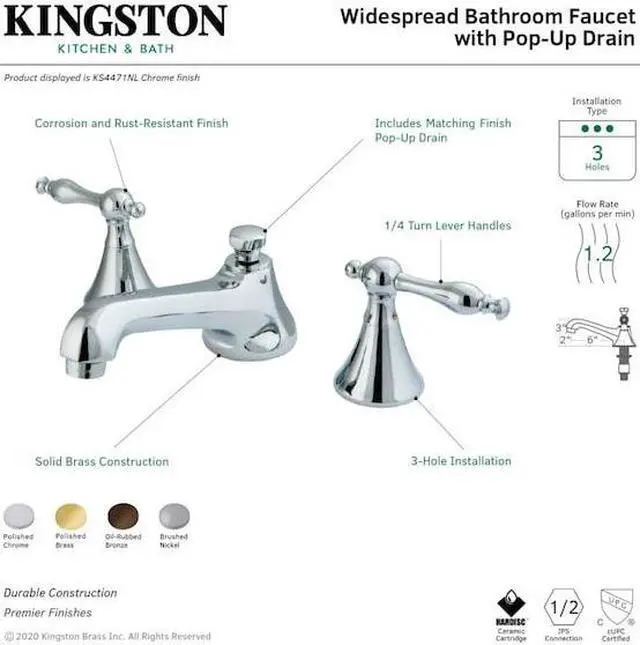 This faucet exemplifies sophisticated grace and beauty while offering top-of-the-line endurance and dependability. Ideal for more spacious bathrooms, widespread faucets are more spread apart and feature a 3-hole installation. The Naples 8-Inch Widespread Bathroom Faucet with Brass Pop-Up and its featured sturdy brass construction and premium oil rubbed bronze finish are glamorize your home's modern ensemble for years to come. Leave your guests with the impression of unparalleled elegance and posh with the exquisite details that is prominent throughout this fixture. A matching finish drain is also included.