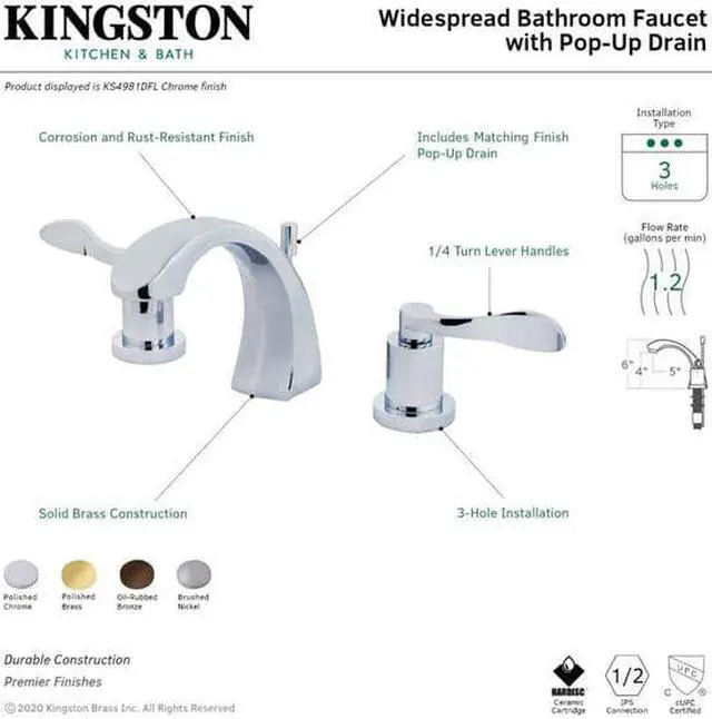 Crafted from streamline design and fluidity in detail, this faucet allows homeowners to relish in effervescence. Ideal for more spacious bathrooms, widespread faucets are more spread apart and feature a 3-hole installation. The NuWave 8-Inch Widespread Bathroom Faucet with Brass Pop-Up and its featured sturdy brass construction and premium brushed nickel finish are glamorize your home's modern ensemble for years to come. A matching finish drain is also included.